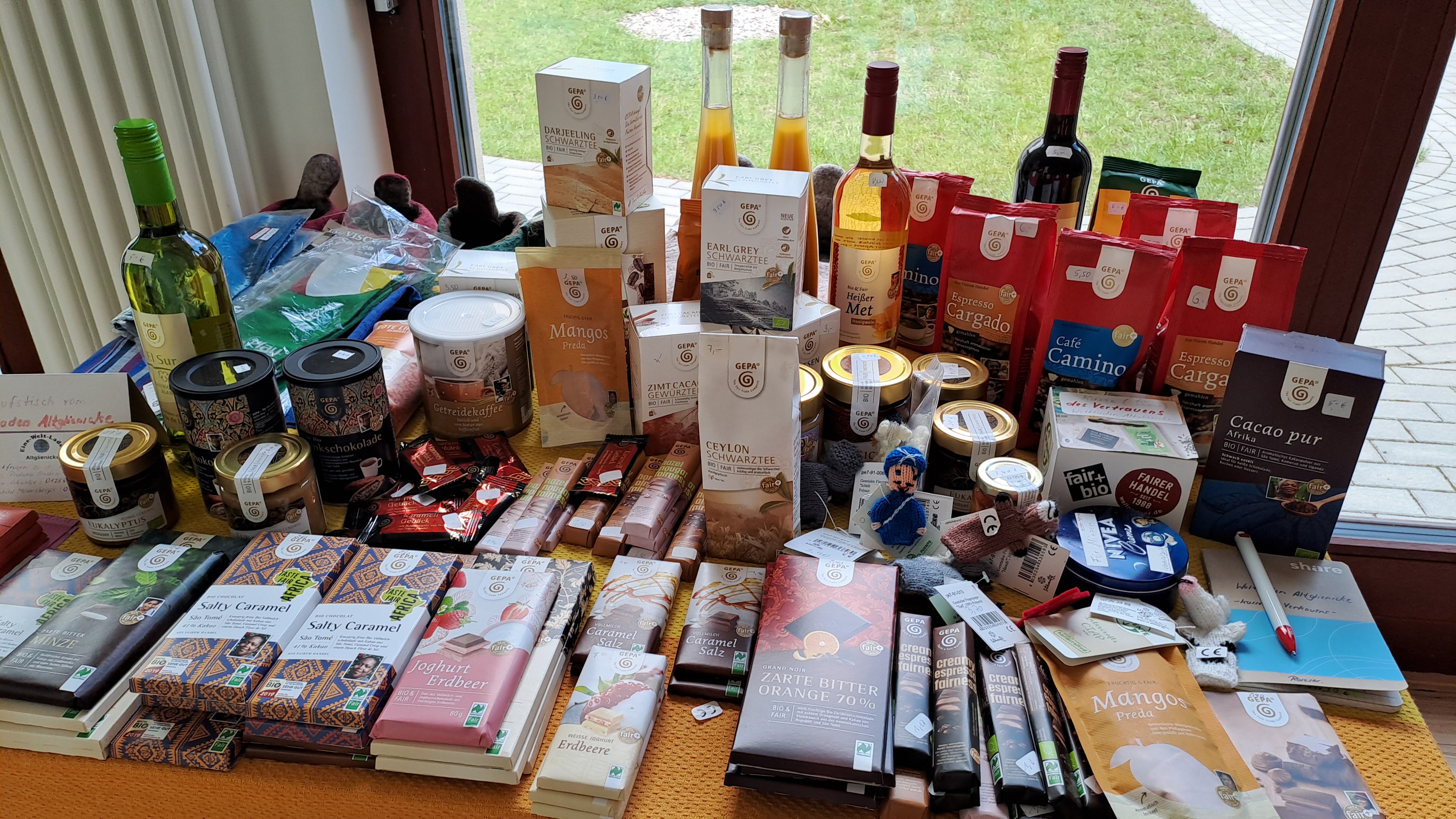 Seit gut 25 Jahren existiert unser Weltladen nun schon in unserer Altglienicker Gemeinde und hat in der Pfarrkirche außer in den Monaten Januar und August jeweils donnerstags von 15 bis 18 Uhr geöffnet. Seit etwa zwei Jahren gibt es zusätzlich im Gemeindezentrum Rosestraße einen Verkaufstisch mit einer Kasse des Vertrauens, der praktisch immer geöffnet ist: er ist zu allen Veranstaltungs- und Büroöffnungszeiten zugänglich.
