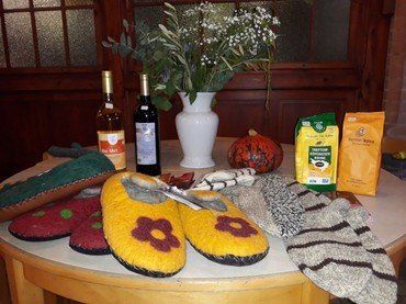 Im Weltladen verkaufen wir fair gehandelte Genuss- und Lebensmittel sowie Kunsthandwerk von Produzenten der Partnerorganisationen aus Afrika, Asien und Lateinamerika. Außerdem werden handgestrickte Socken und gefilzte Hausschuhe aus der Gemeinde VISCRI in Rumänien verkauft, um dort Frauen und Mädchen und damit ihren Familien zu einem dringend benötigten Einkommen zu verhelfen.
