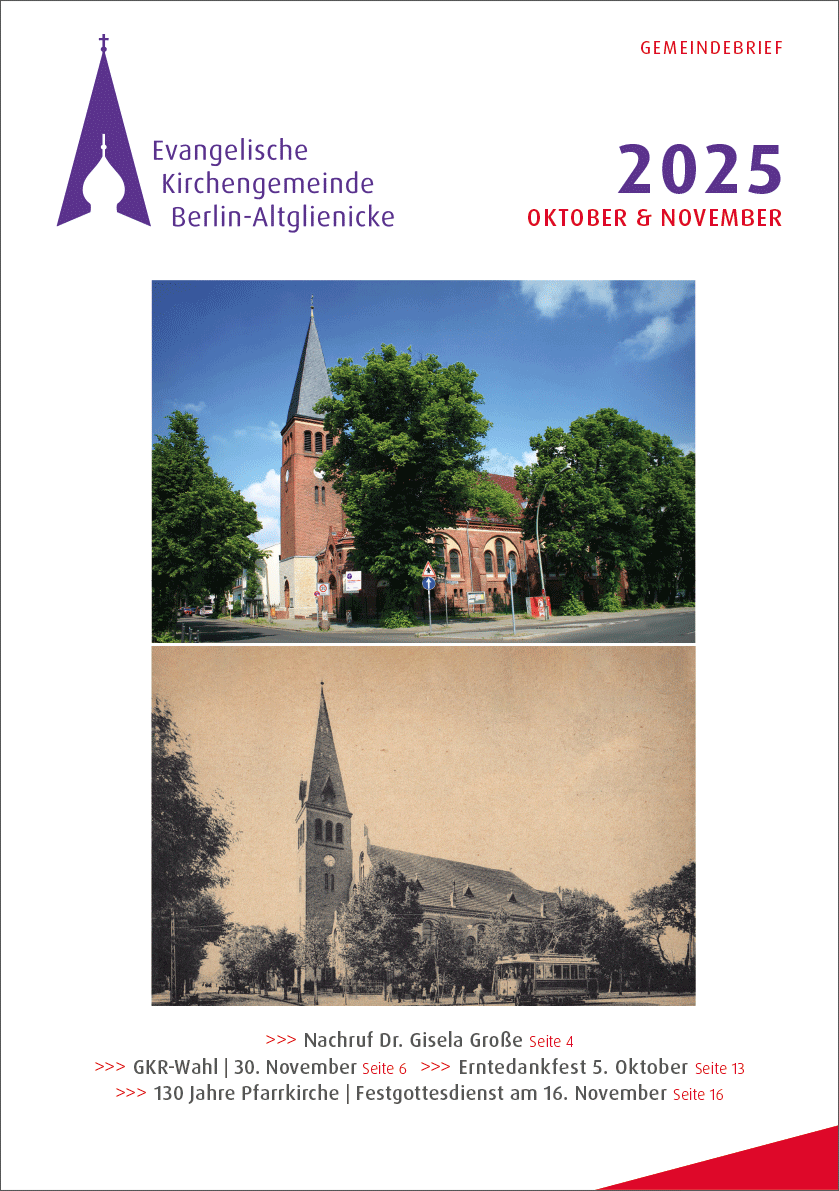Ganz unten finden Sie auch einen Hinweis auf die Sonderausgabe zur Einweihung des neuen Gemeindezentrums mit historischen Beiträgen, die Sie gegen eine geringe Spende im Gemeindebüro erhalten.