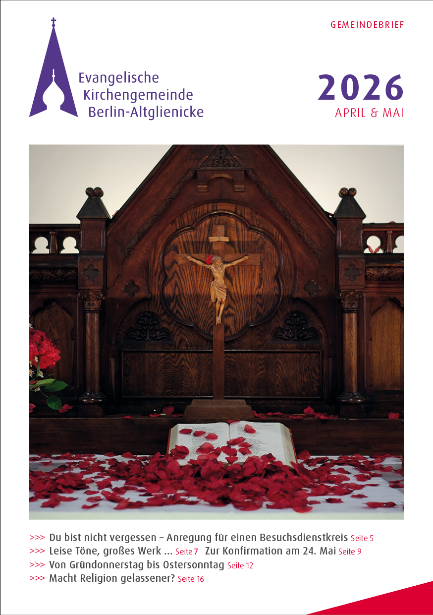 Hier finden Sie bisher unseren Gemeindebrief zum Download. Falls Ihnen mal keiner zugestellt wurde, Sie Ihr Papierexemplar verlegt haben oder Sie einfach lieber online lesen. Es ist trotz mehrere Durchgänge, in denen wir Korrektur lesen, möglich, dass sich Fehlerteufel unbemerkt eingeschlichen haben. Wir bitten das zu entschuldigen.